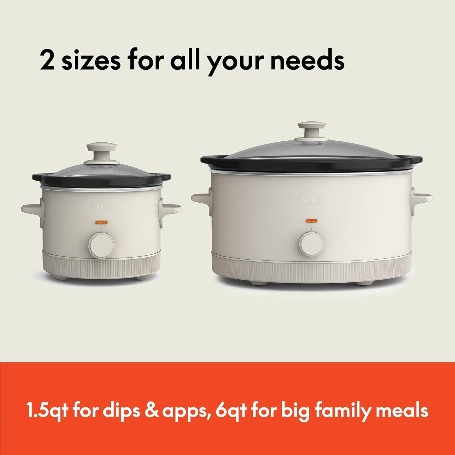 PERFECT SLOW COOKER DUO: This bundle includes a 1.5 Qt cooker for dips, sauces, and small meals, and a 6 Qt cooker for soups, stews, and family-sized dishes. Ideal for every cooking need, from cozy dinners to entertaining a crowd