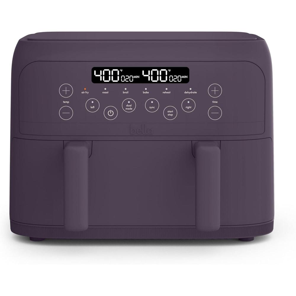 bella 4 Qt TriZone Air Fryer, EverGood™ Ceramic Nonstick Coating, Dual Basket Design w Removable Divider, Digital Touchscreen Control w 6 Preset Cooking Options, 1200 Watt, 3lb Capacity, Seaglass(Plum)