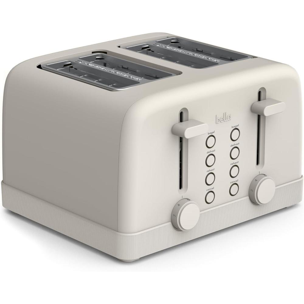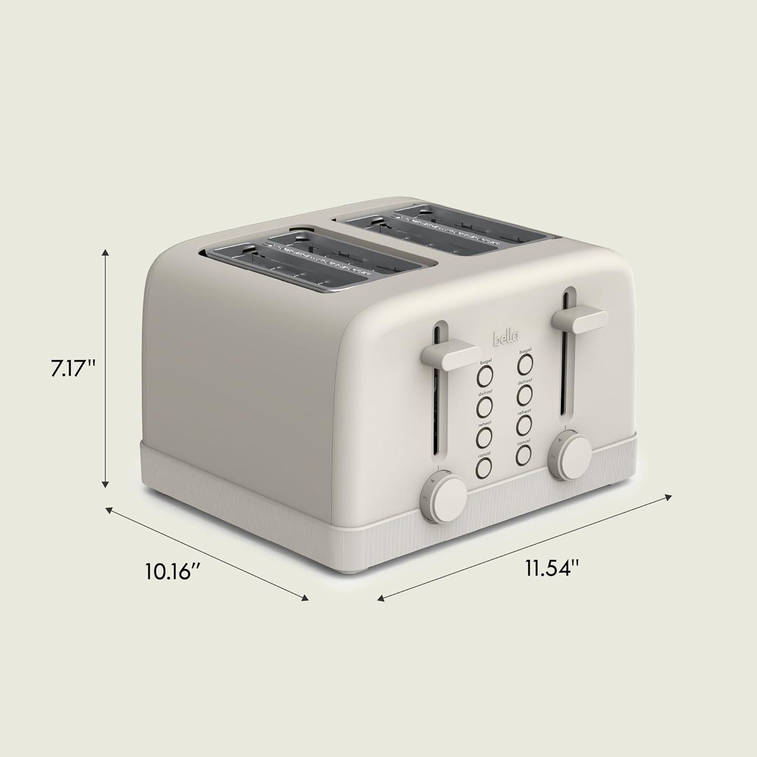 Elevate your morning routine with the bella 4-Slice Toaster, where style meets functionality in the most delicious way. With soft rounded edges and chic bottom ribbing, our home appliances not only perform flawlessly but also add a modern touch to your kitchen. Choose from six precise shade settings, whether you’re craving a lightly golden slice or a deeply crispy toast. The Bagel, Defrost, Reheat, and Cancel functions make it easy to get the perfect browning every time, no matter what you're toasting. Designed for convenience, the high lift lever of this wide slot toaster ensures easy access to smaller breads like English muffins, while the auto-centering guides guarantee even toasting across every slice. Cleanup is a breeze with the removable slide-out crumb tray, and the anti-jam and auto shut off features provide added peace of mind. Plus, with a 900-watt toasting system, you can enjoy your breakfast faster than ever. Available in three stunning bella colors—Oatmilk, Surf, and Blossom—this smart toaster is not just a kitchen essential but also a stylish gift idea for new apartments, college dorms, and more. And with the cord wrap feature under the base, your countertop stays neat and clutter-free, making this toaster as practical as it is beautiful.