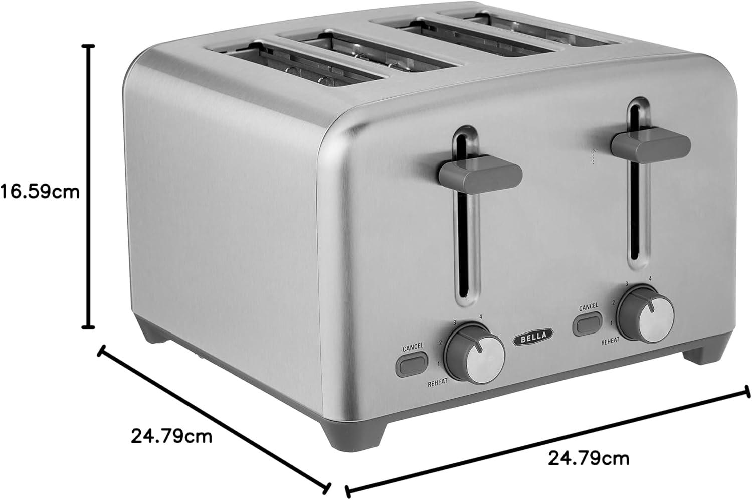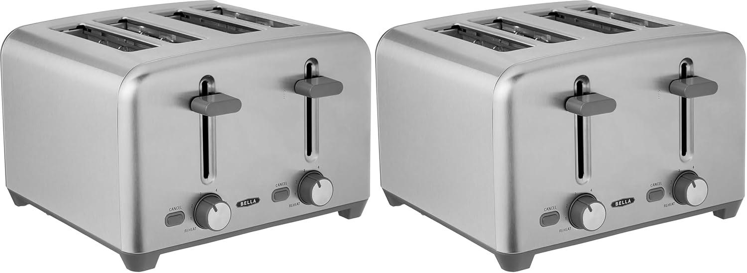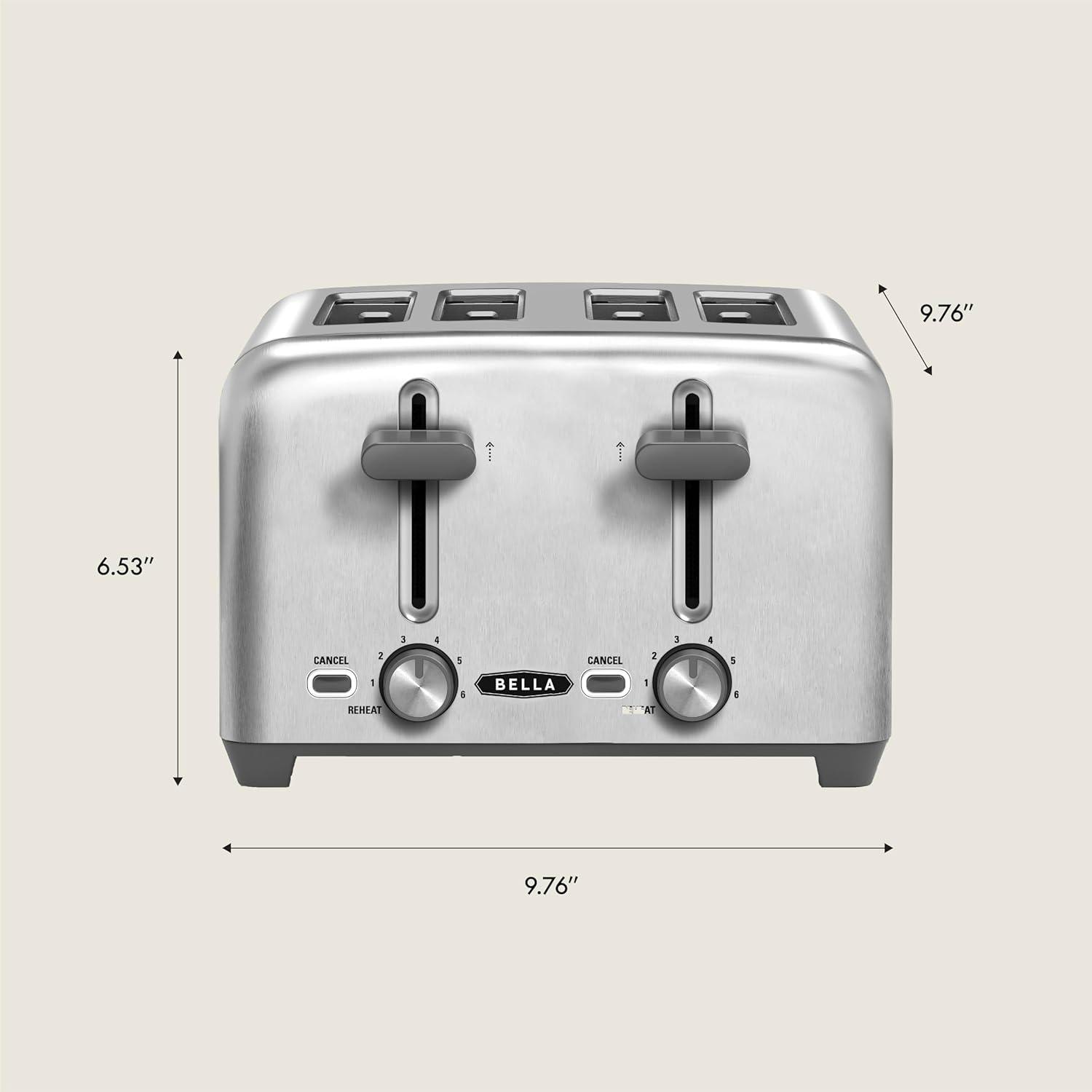 BELLA 4 Slice Toaster with Auto Shut Off - Extra Wide Slots and Removable Drop-Down Crumb Tray with Cancel and Reheat Function - For Texas Toast, Large Bread & Bagel, Stainless Steel(Stainless Steel)