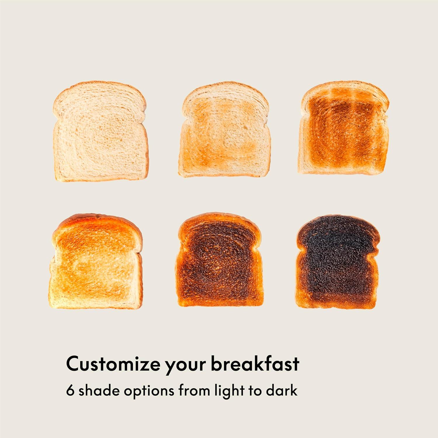 TOAST THE WAY YOU LIKE IT: With temperature control and 6 different browning options, you can say goodbye to burnt bread and hello to perfectly toasted slices. The reheat function and cancel button make the portable toaster super easy to use and operate