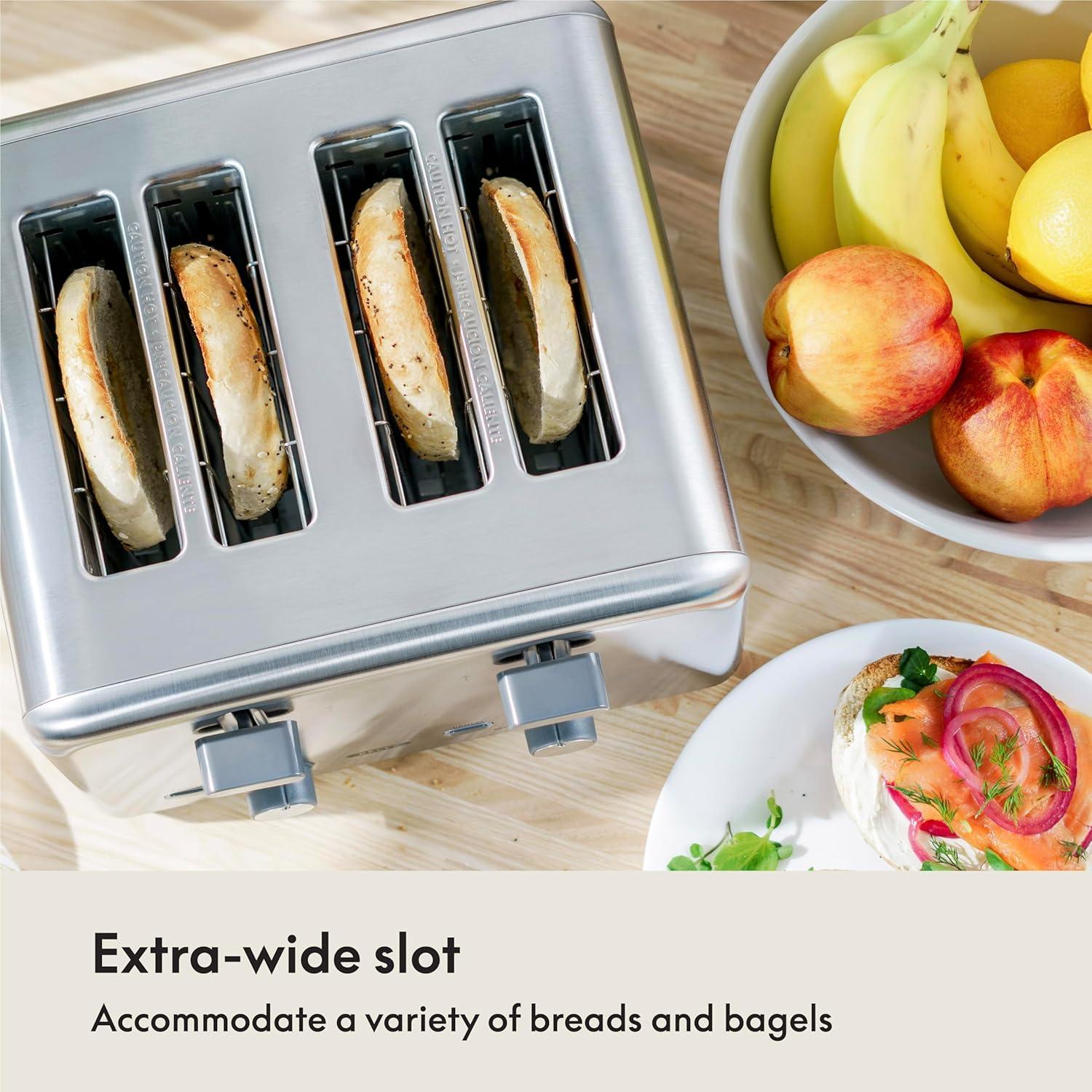 FAMILY-FRIENDLYElevate your breakfast game with BELLA's new beautiful toaster. Boasting 4 spacious slots, it can accommodate an array of breads, muffins, and bagels simultaneously, making it an ideal choice for hectic mornings with your loved ones