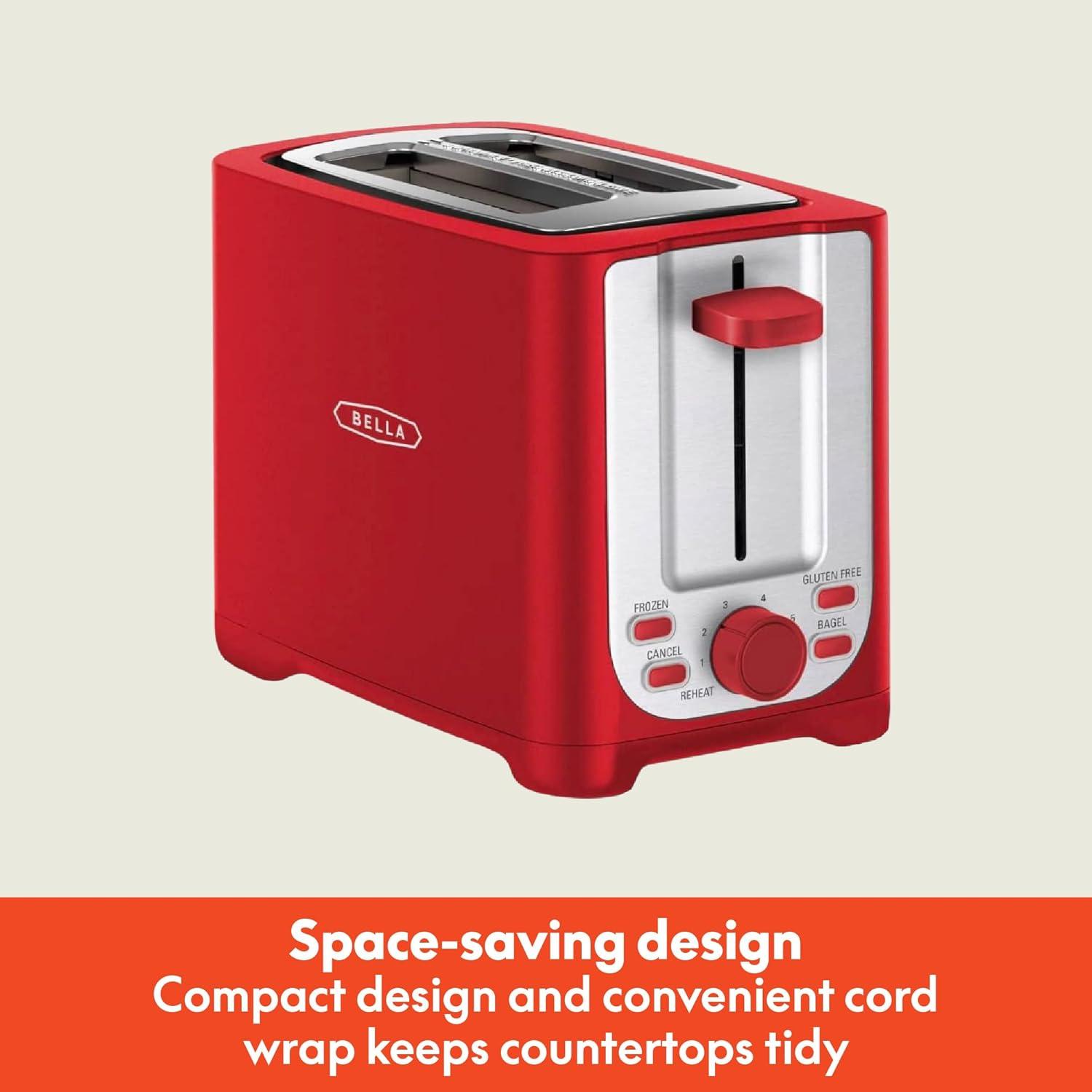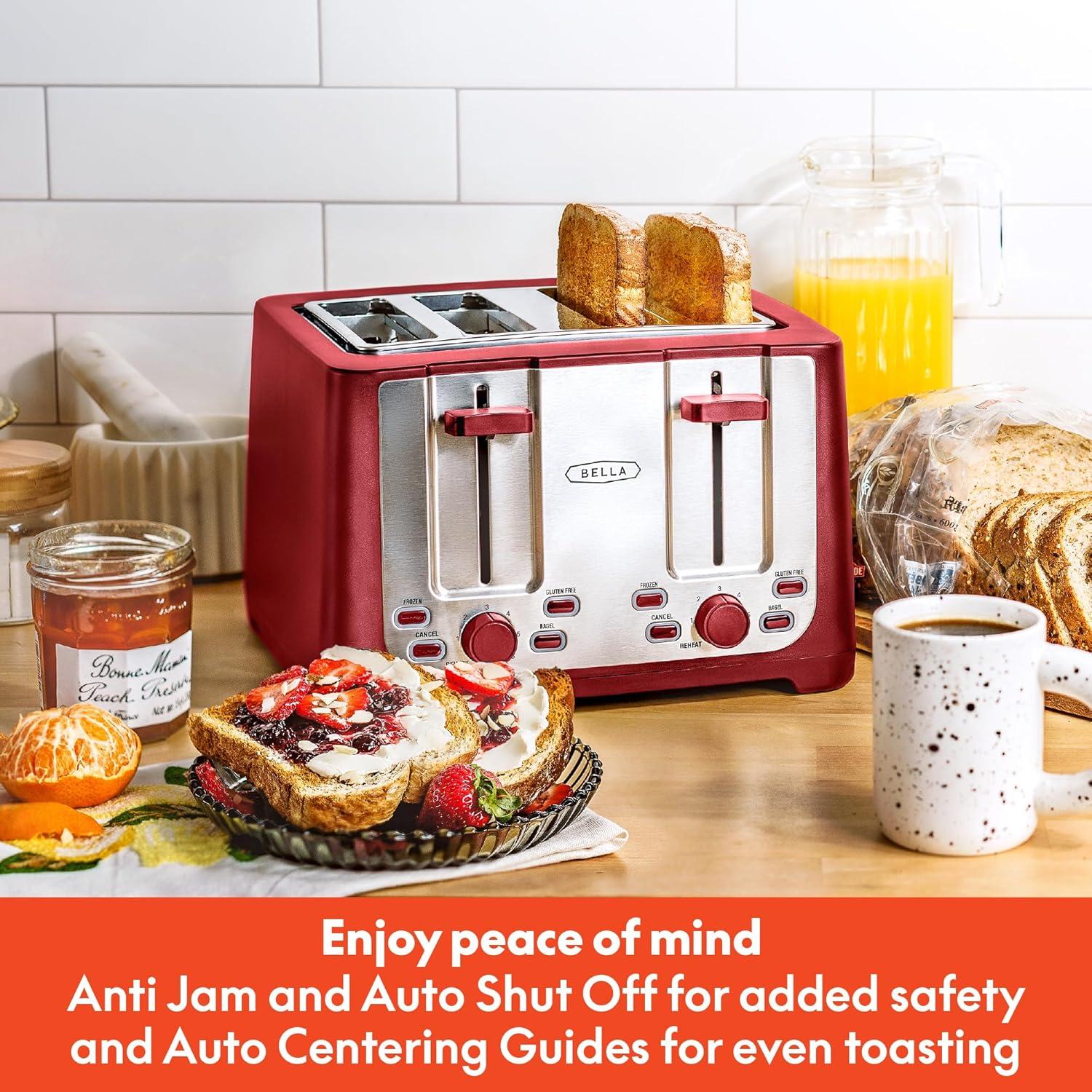 BELLA 4 Slice Toaster with Auto Shut Off - Extra Wide Slots & Removable Crumb Tray and Cancel, Defrost & Reheat Function - Toast Bread & Bagel, Black(Red)