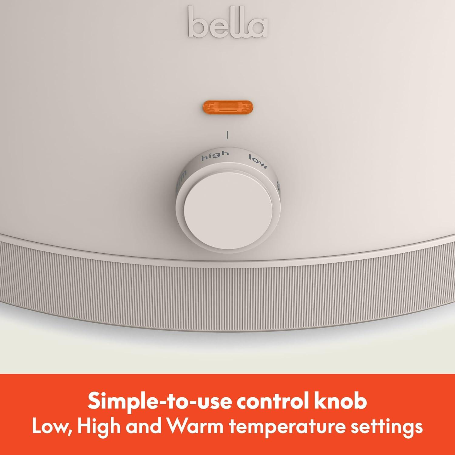 bella 6.0 Qt Manual Slow Cooker, Ceramic Nonstick Coating, 3 Temperature Settings, Dishwasher Safe Stoneware Pot and Tempered Glass Lid, Cool Touch Handles & Tangle Free Cord Wrap, Blossom(Oatmilk)