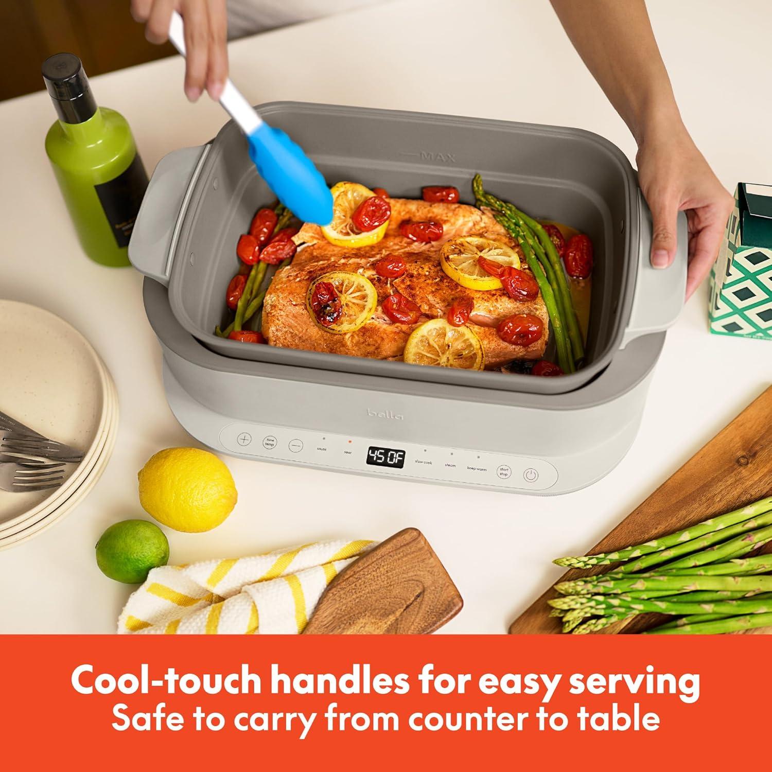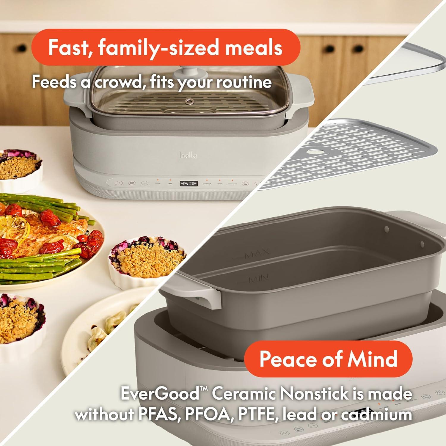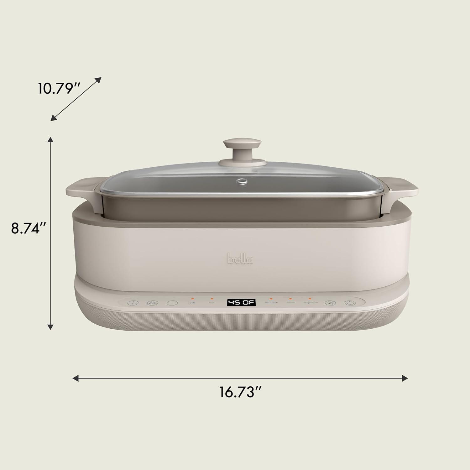 bella 6.0 QT Multi-Cooker, Ceramic Nonstick Coating, 4-in-1 Versatility, 4 cooking functions, Slow Cook, Sear, Saute, Steam, Serves 7 people, Dishwasher Safe Pot & Tempered Glass Lid, Tangle Free Cord Wrap, Oatmilk
