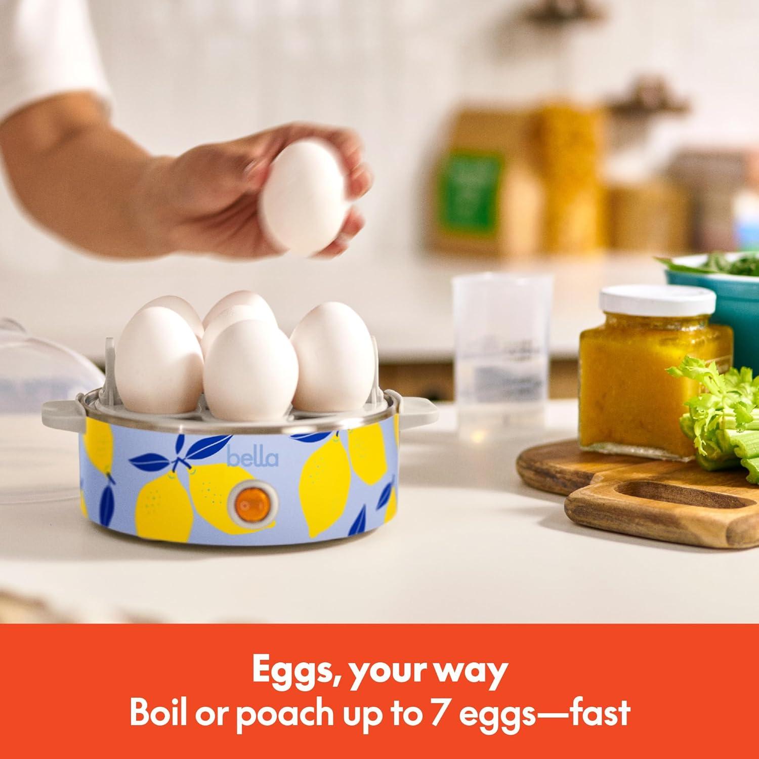 bella Electric Egg Cooker, 7 Eggs Capacity Tray, Single Stack, for Poached, Scrambled, Hard, Medium & Soft Boiled Eggs, Omelets and Steamed Dumplings, Auto Shutoff, 360 Watt, Blossom(Blue Lemon Drop)