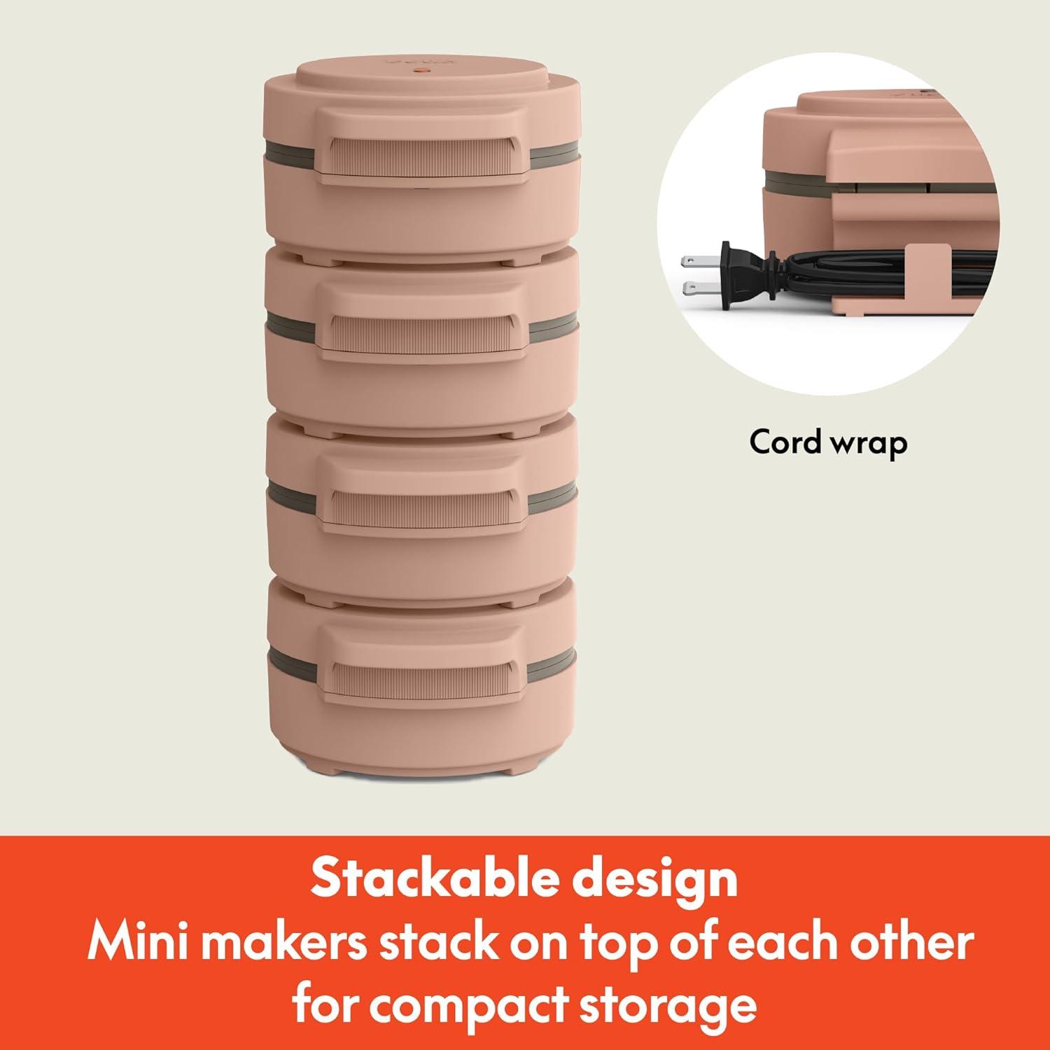 imagebella SnacknStore Mini Waffle Maker EverGood Ceramic Nonstick Coating Cord Wrap Ready Indicator Light ampamp Cool Touch Handles Stackable Design ampamp Customizable Plates 400 Watt BlossomOatmilk