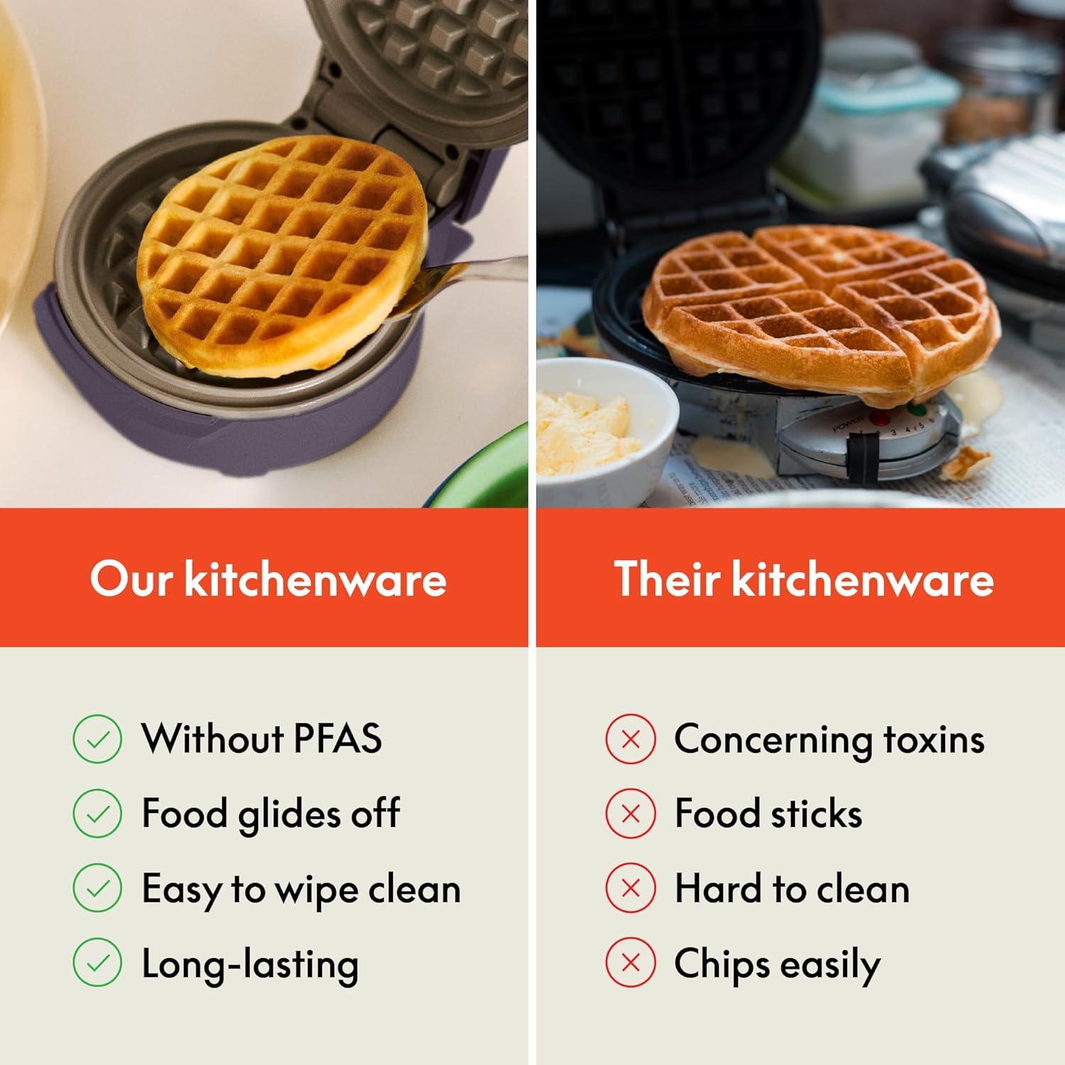 Nonstick Magic, Mess-Free Cooking: Our EverGood Ceramic Nonstick Coating makes waffle-making a breeze. Free from PFAS, PFOA, PTFE, lead, and cadmium, this coating ensures a smooth release every time, with fast, easy cleanup that’s just as sweet.
