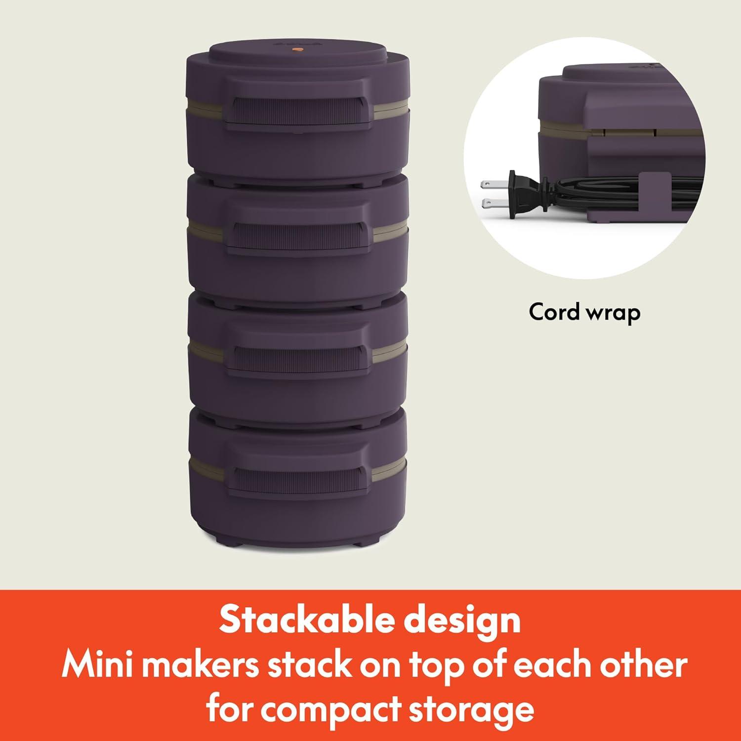 imagebella SnacknStore Mini Waffle Maker EverGood Ceramic Nonstick Coating Cord Wrap Ready Indicator Light ampamp Cool Touch Handles Stackable Design ampamp Customizable Plates 400 Watt BlossomPlum