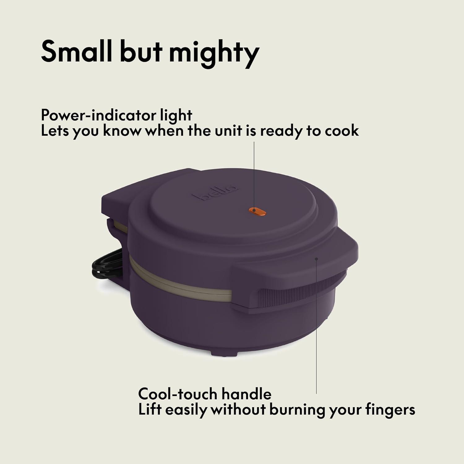 bella Snack-n-Store Mini Waffle Maker, EverGood™ Ceramic Nonstick Coating, Cord Wrap, Ready Indicator Light & Cool Touch Handles, Stackable Design & Customizable Plates, 400 Watt, Blossom(Plum)